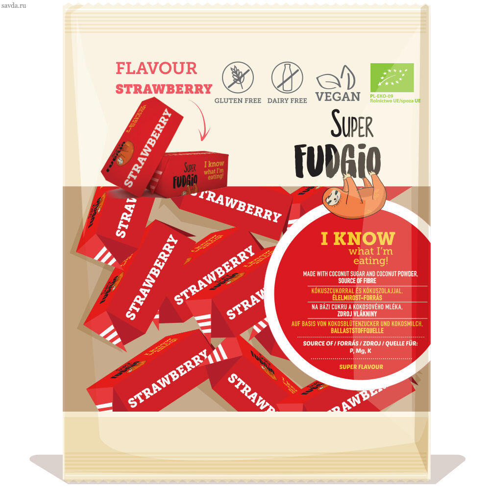Органическая клубничная помадка без молока и глютена на кокосовом сахаре. Произведено по BIO стандарту.
