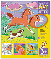 Это набор раскрасок-трафаретов для цветных шедевров. С их помощью ребёнок сможет легко нарисовать красивые картинки с домашними любимцами. На плотном пластике вырезан контур рисунка. Просто положите его на лист бумаги, обведите по контуру, а затем раскрасьте получившееся изображение. Можно копировать образец для раскрашивания на обложке или придумать свой вариант. Картина получится аккуратной и эффектной, ребёнок будет в восторге. Рисуйте и любуйтесь!