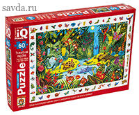 В коробке 60 деталей, которые складываются в картинку с озорными обитателями джунглей. Но соотнести элементы друг с другом и собрать рисунок — это только полдела. Когда пазл будет готов, попросите ребёнка найти на рисунке предметы, расположенные в рамке по контуру — такая игра на внимание понравится и самым маленьким детям, и ребятам постарше.