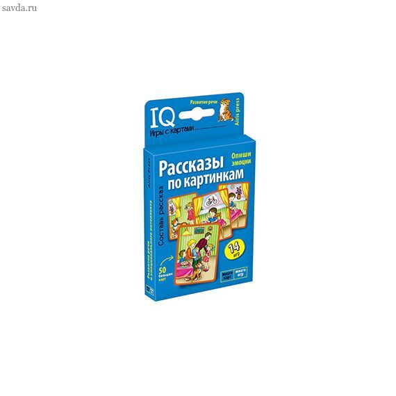 Набор состоит из 50 двусторонних карточек. На цветной стороне даны сюжетные картинки. Нужно разложить карточки с одинаковой рамкой в правильной логической последовательности и составить рассказ, делая акцент на эмоциях персонажей. На чёрно-белой стороне изображены различные эмоции и написаны слова, которые их обозначают. Задача - подобрать слово к изображению. Правильность решения можно проверить с помощью штрих-кода. Цель игр - развитие речи, воображения, логического мышления, эмоционального восприятия.