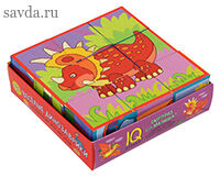 Комплект из 9 кубиков разработан специально для детей от 4 лет. Ребёнку нужно сложить картинку из 9 фрагментов. В качестве подсказки даны 6 картинок с изображением динозавров.