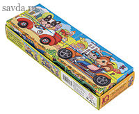 Набор состоит из 12 кубиков размером 4х4 см. Ребёнку нужно сложить картинки из 2, 4, 6 и 8 фрагментов. В этом ему помогут листовки-подсказки с изображением гоночных машин. Далее машины можно соединить в любой последовательности, картинки взаимозаменяемы. Во время игры происходит знакомство с понятиями «часть» и «целое», развивается умение работать по образцу. Наклейки на кубики сделаны из качественной гладкой бумаги, которая не портится от игры.