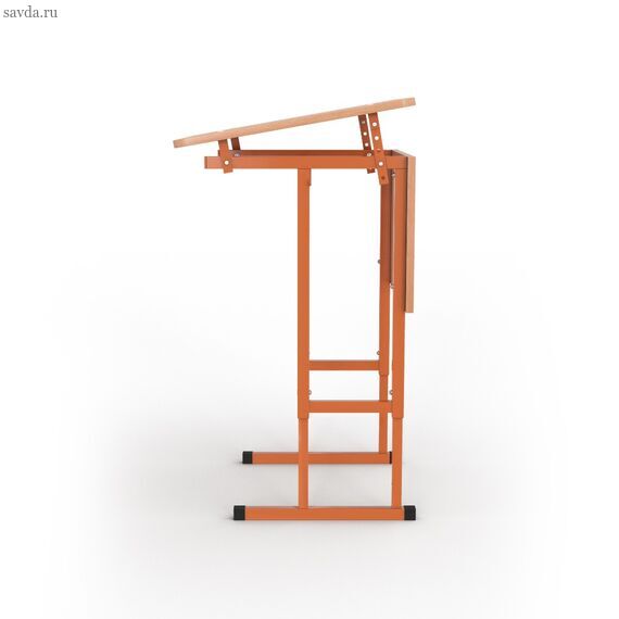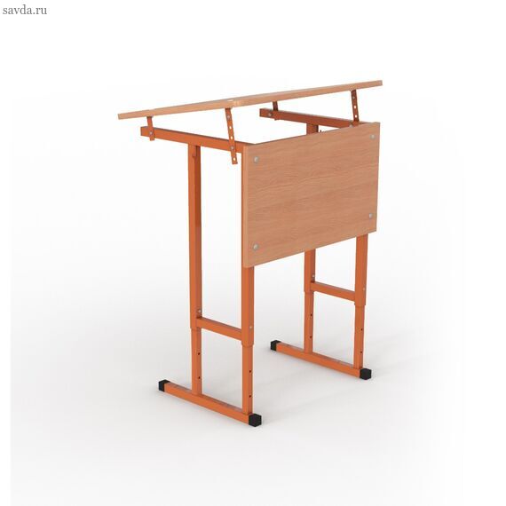 Стол ученический одноместный , регулируемый по высоте и углу наклона стола. Крышка стола и царги изготовлены из ЛДСП цвет "Бук". Металлокаркас изготовлен из профильной трубы 25х25мм и 20х20мм толщиной 1,2 мм, покрытой порошковой краской коричневого цвета . Размер крышки стола 600х500мм. высота зависит от выбранной ростовой группы. *Возможно изготовление крышки стола с закругленными углами, за дополнительную плату.