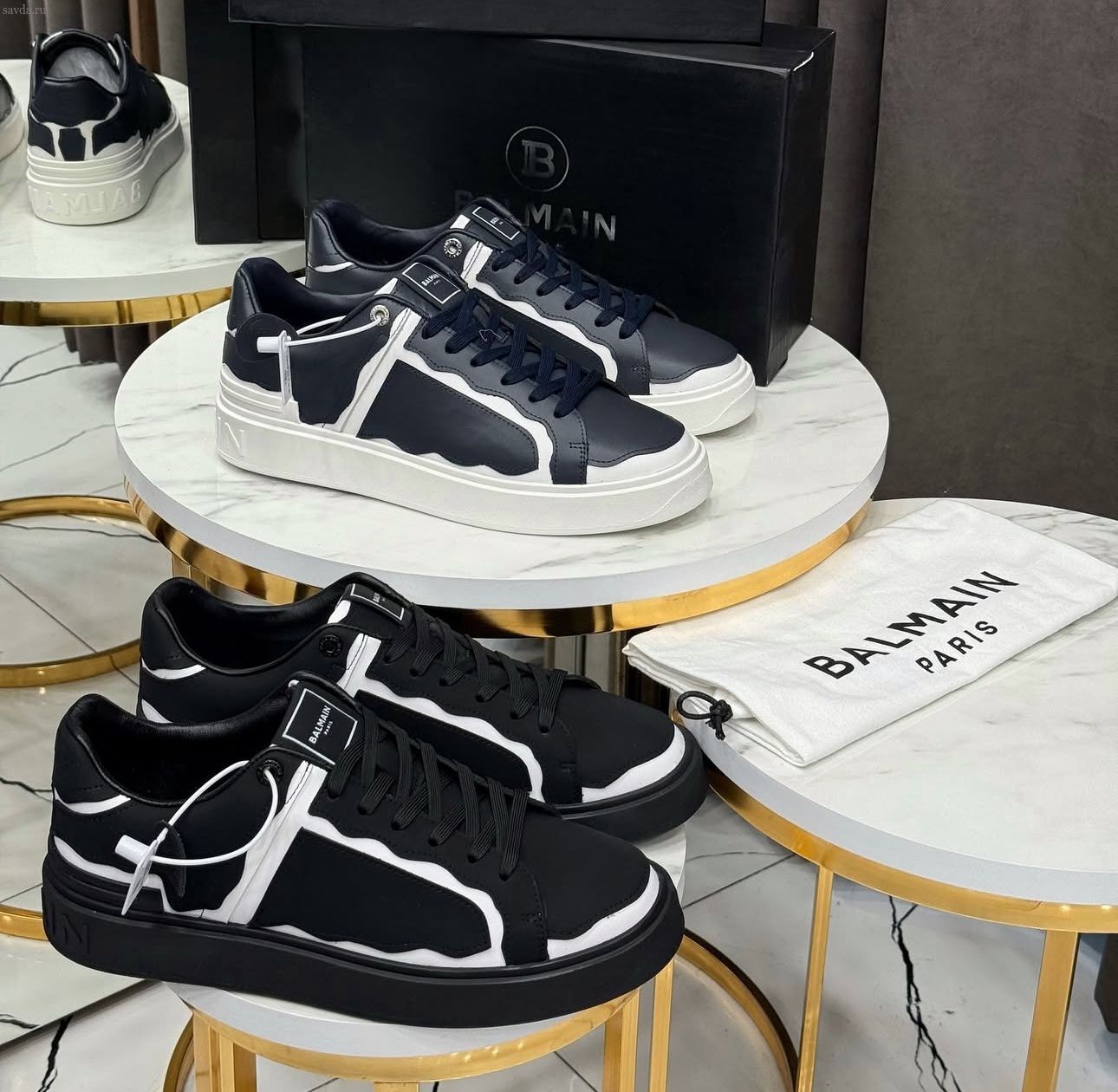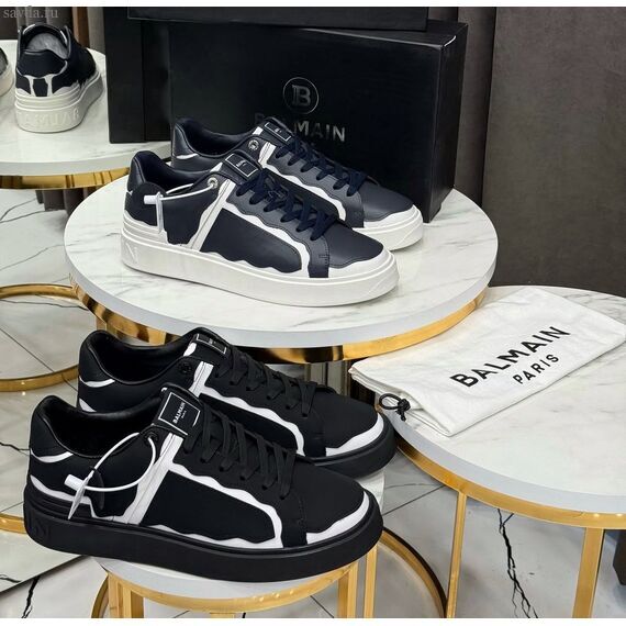 Дизайн и детали: Эти кроссовки от французского люксового дома **Balmain** воплощают элегантную минималистику с ноткой урбанистического бунтарства. Модель **BA-IA** выполнена в классической монохромной гамме (белый, черный или их комбинация) с контрастными акцентами, что делает их идеальными для повседневной носки.