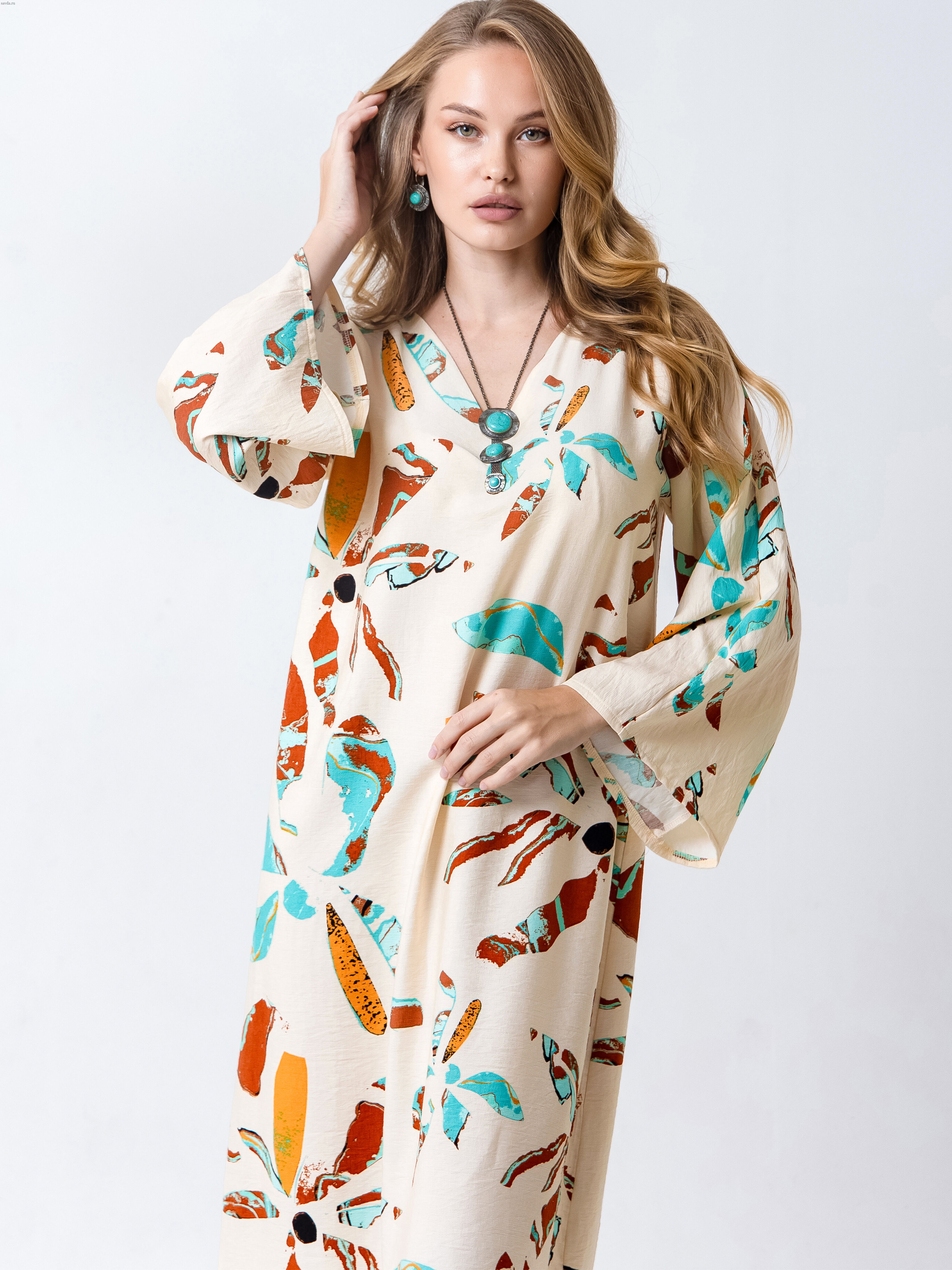 Элегантное длинное женское платье от бренда Barbara Bah выполнено в свободном крое с цельнокроеным рукавом и V-образным вырезом. Нарядное платье в стиле бохо станет отличным решением для участия в праздничном мероприятии и создаст для вас яркий уникальный образ. Вискоза с небольшим процентом нейлона делает ткань шелковистой, прочной и износостойкой и оснащает ее хорошими эксплуатационными качествами. Еще одна особенность ткани - ее прохладность и приятность к телу, напоминает шелк. Это то самое универсальное нарядное платье, которое выручает на разные поводы: для пляжного, дачного, прогулочного отдыха, для путешествий. Модель праздничного вечернего повседневного и нарядного платья МОНАКО подходит и для приема гостей. Модель предназначена для зрелых женщин в возрасте, а также беременных и молодых мам, готовящимся на выписку из роддома. Особенно важно заметить, что длина макси и оверсайз лучше смотрится на высоких фактурных женщин с широкими плечами и прямой спиной.  В зависимости от фигуры оно смотрится как трапеция либо как прямое платье для женщин после 35 и для девушек. Такую одежду можно рассмотреть как подарок женщине, жене, маме, сестре, подруге.