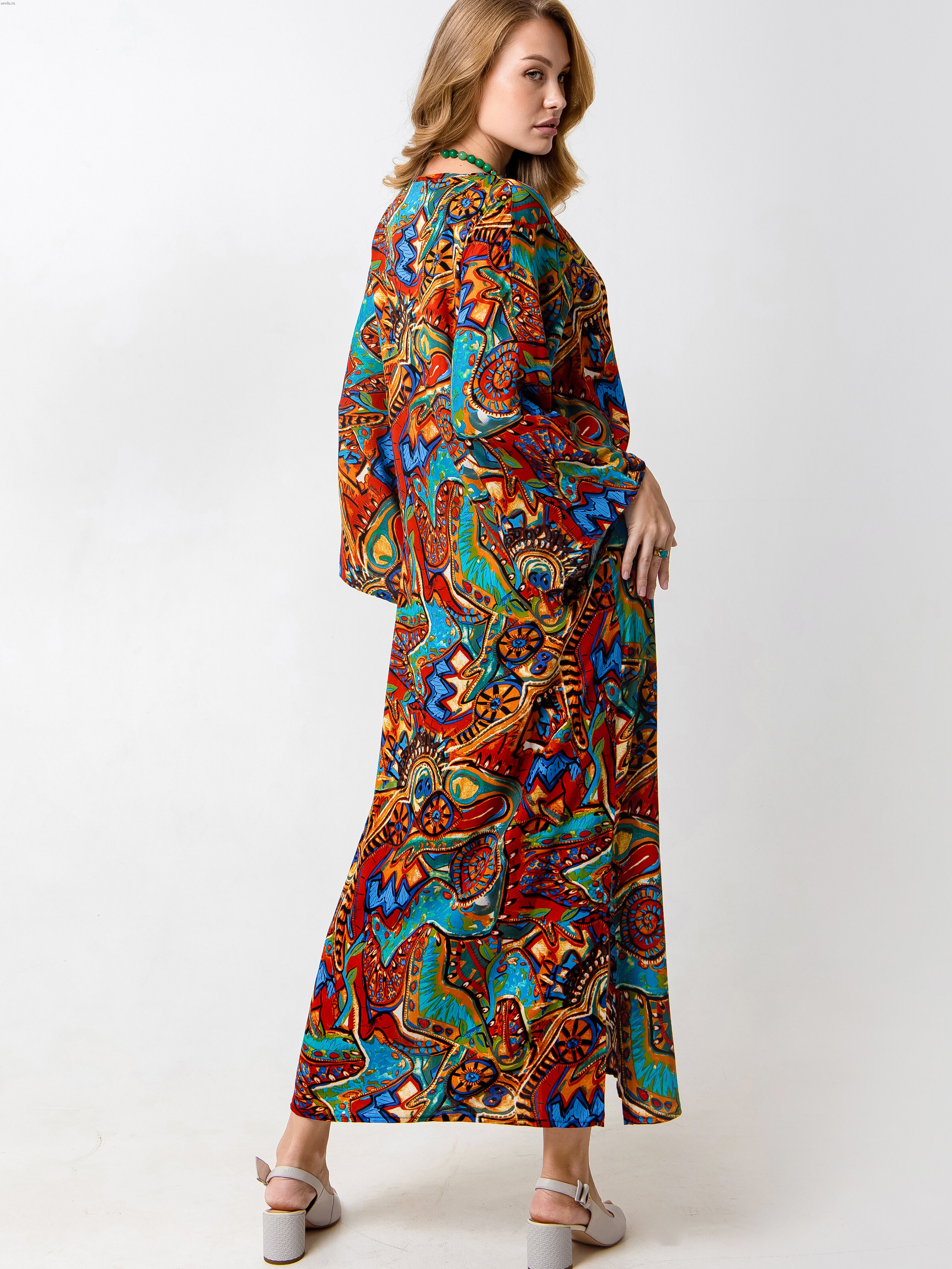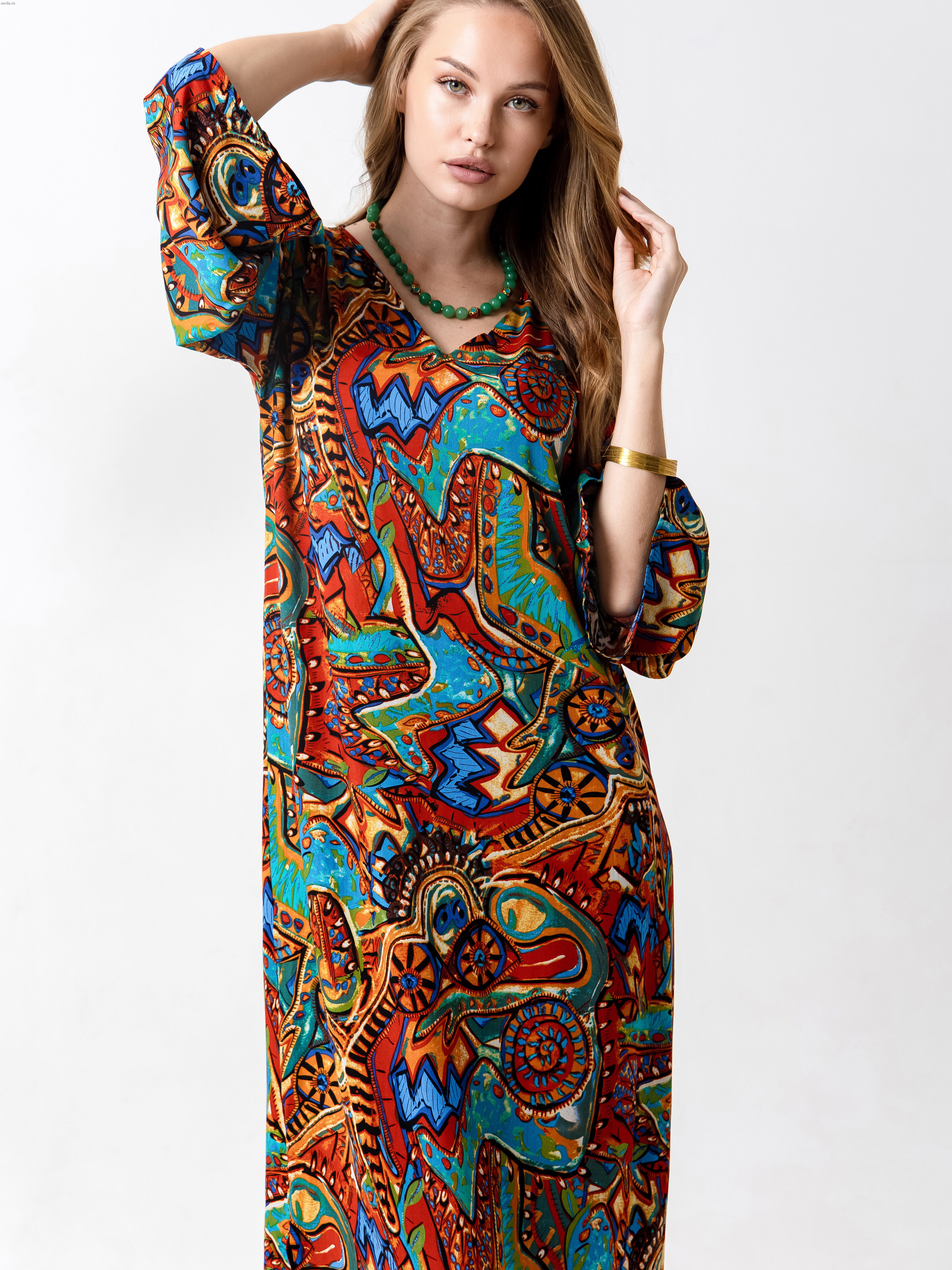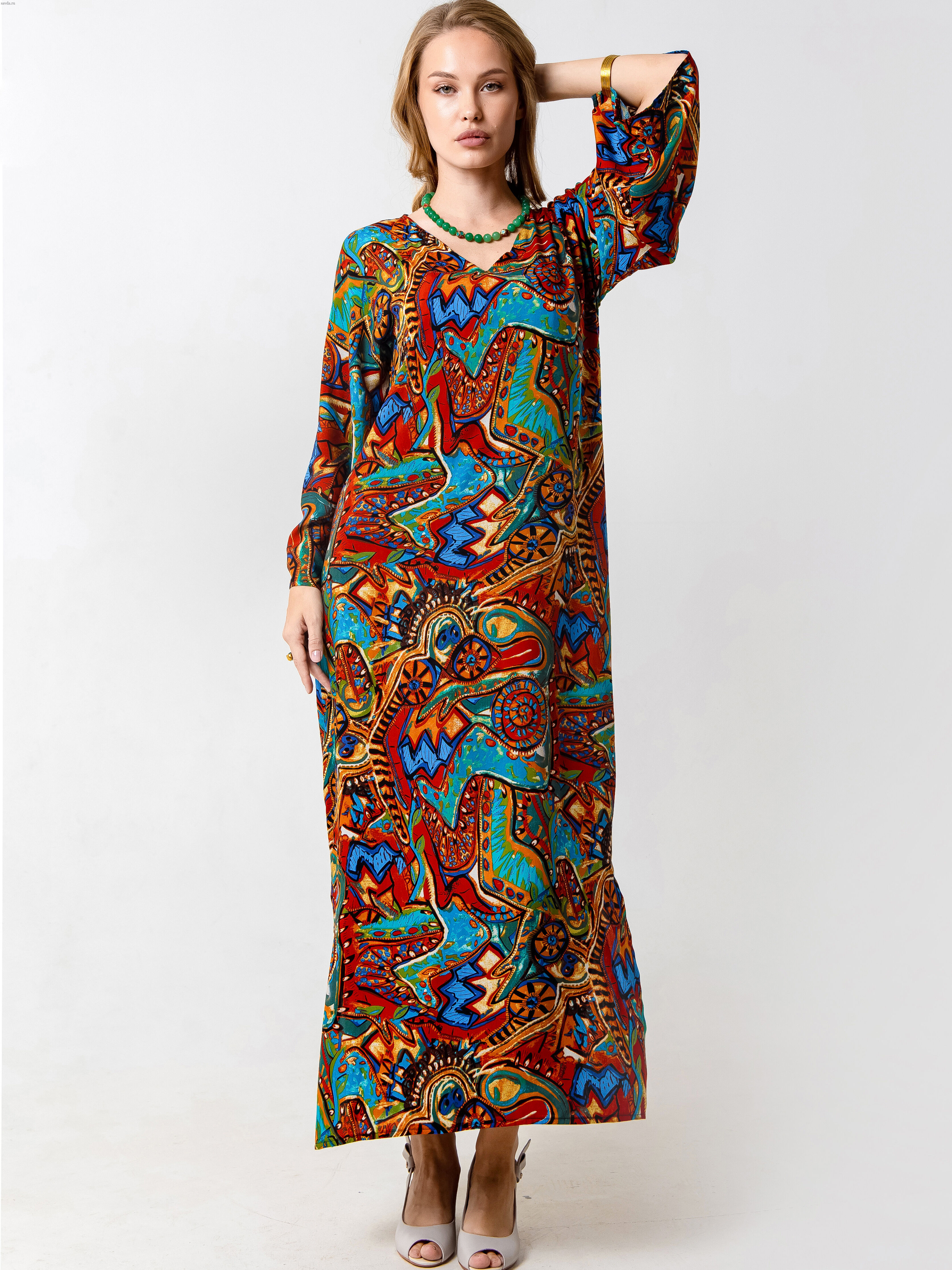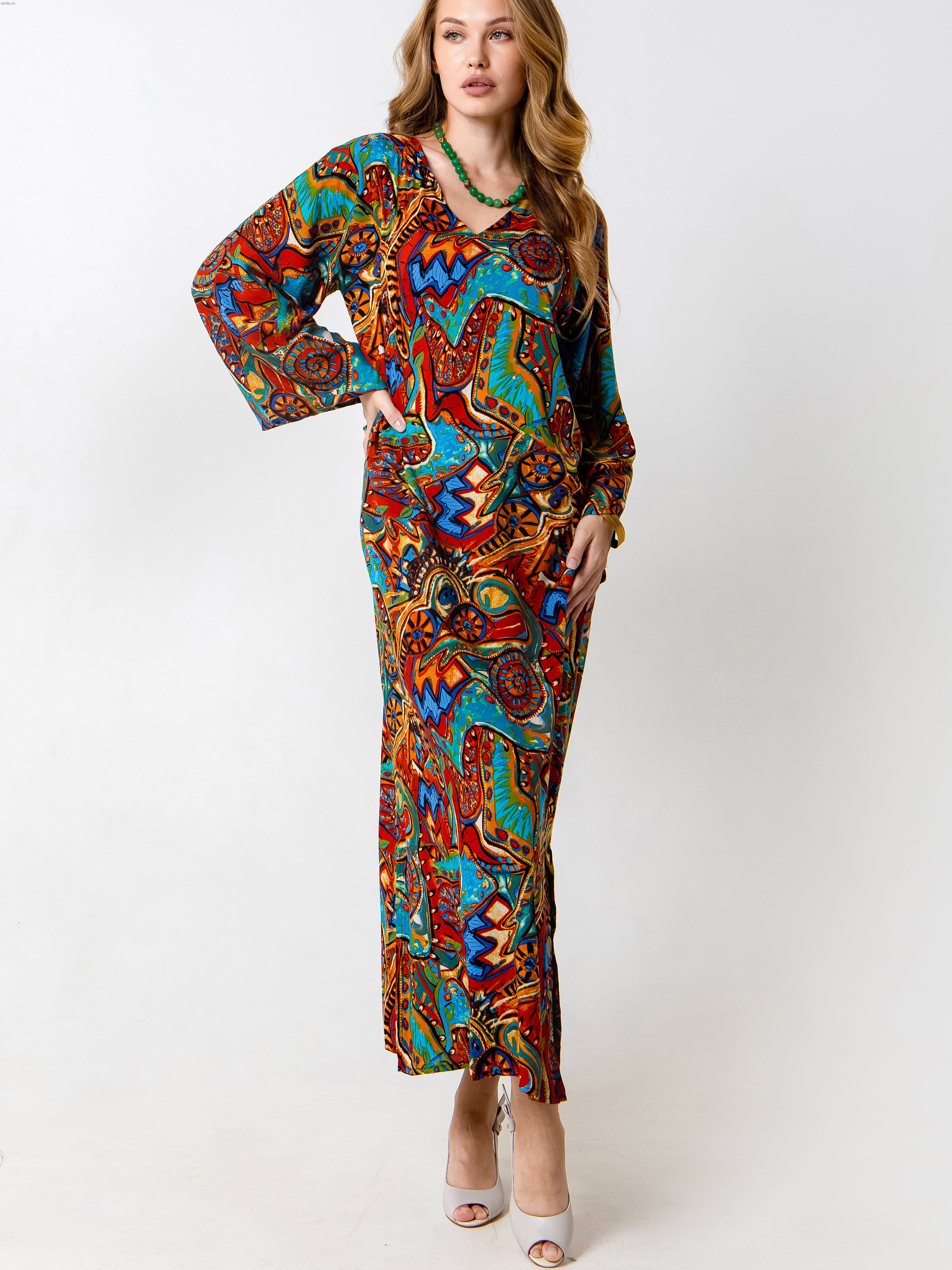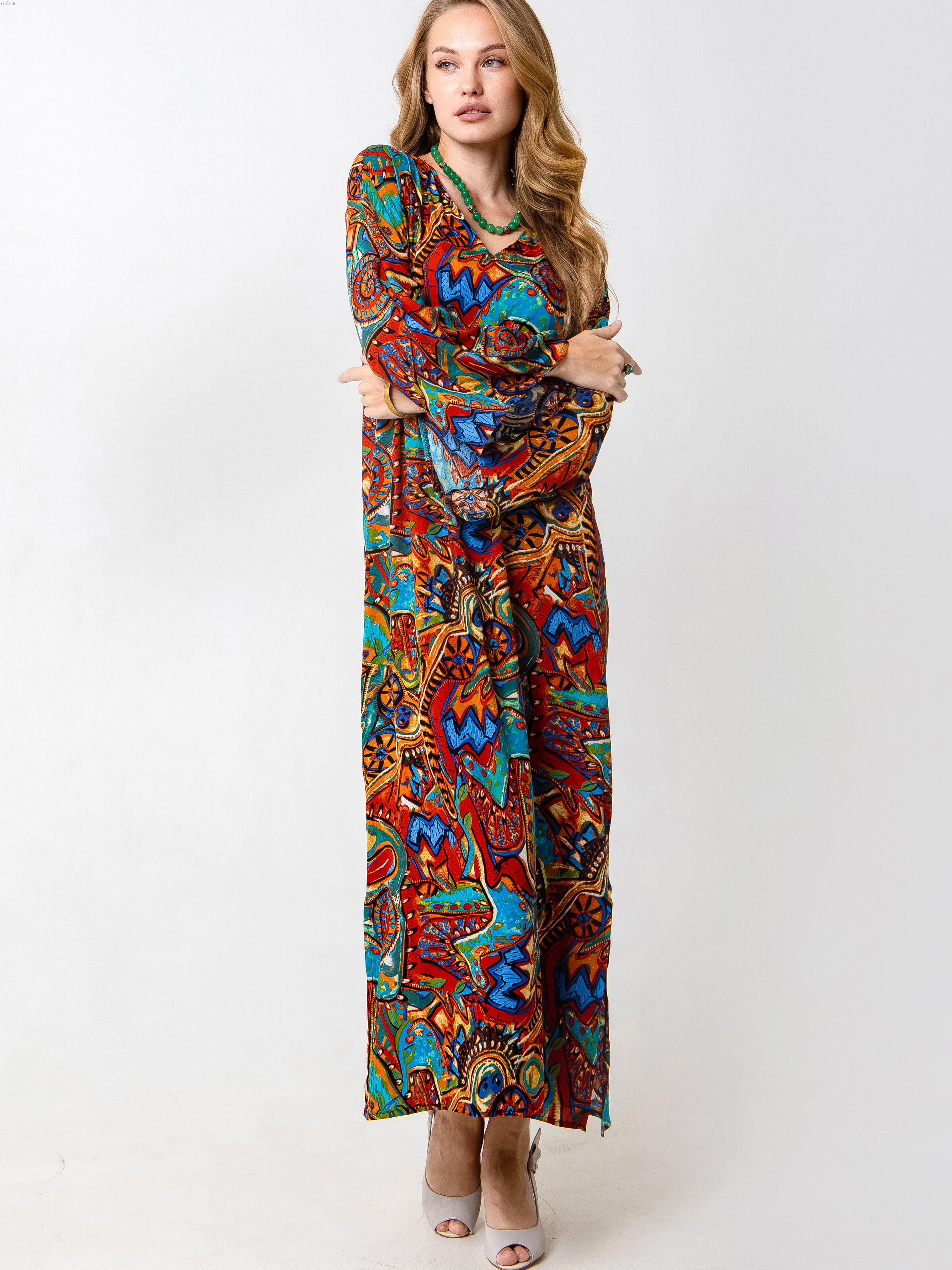 Элегантное длинное женское платье от бренда Barbara Bah выполнено в свободном крое с цельнокроеным рукавом и V-образным вырезом. Нарядное платье в стиле бохо станет отличным решением для участия в праздничном мероприятии и создаст для вас яркий уникальный образ. Вискоза с небольшим процентом нейлона делает ткань шелковистой, прочной и износостойкой и оснащает ее хорошими эксплуатационными качествами. Еще одна особенность ткани - ее прохладность и приятность к телу, напоминает шелк. Это то самое универсальное нарядное платье, которое выручает на разные поводы: для пляжного, дачного, прогулочного отдыха, для путешествий. Модель праздничного вечернего повседневного и нарядного платья МОНАКО подходит и для приема гостей. Модель предназначена для зрелых женщин в возрасте, а также беременных и молодых мам, готовящимся на выписку из роддома. Особенно важно заметить, что длина макси и оверсайз лучше смотрится на высоких фактурных женщин с широкими плечами и прямой спиной.  В зависимости от фигуры оно смотрится как трапеция либо как прямое платье для женщин после 35 и для девушек. Такую одежду можно рассмотреть как подарок женщине, жене, маме, сестре, подруге.