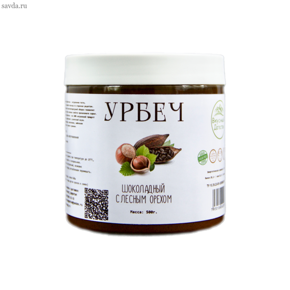 Шоколадный урбеч — это уникальный микс какао бобов и фундука, который улучшает настроение, способствует сжиганию жиров, укрепляет нервную систему и способствует улучшению состояния кожных покровов, волос, ногтей и зубов и ядер лесного ореха, который действует на укрепление организма человека, укрепляет сердечно-сосудистую систему и улучшает работу головного мозга.