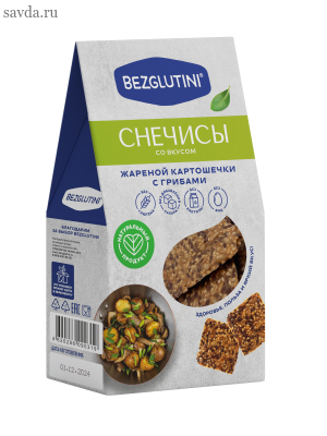 Снечисы со вкусом жареной картошечки с грибами БЕЗ САХАРА И БЕЗ ГЛЮТЕНА, Bezglutini, 70г * 14 шт