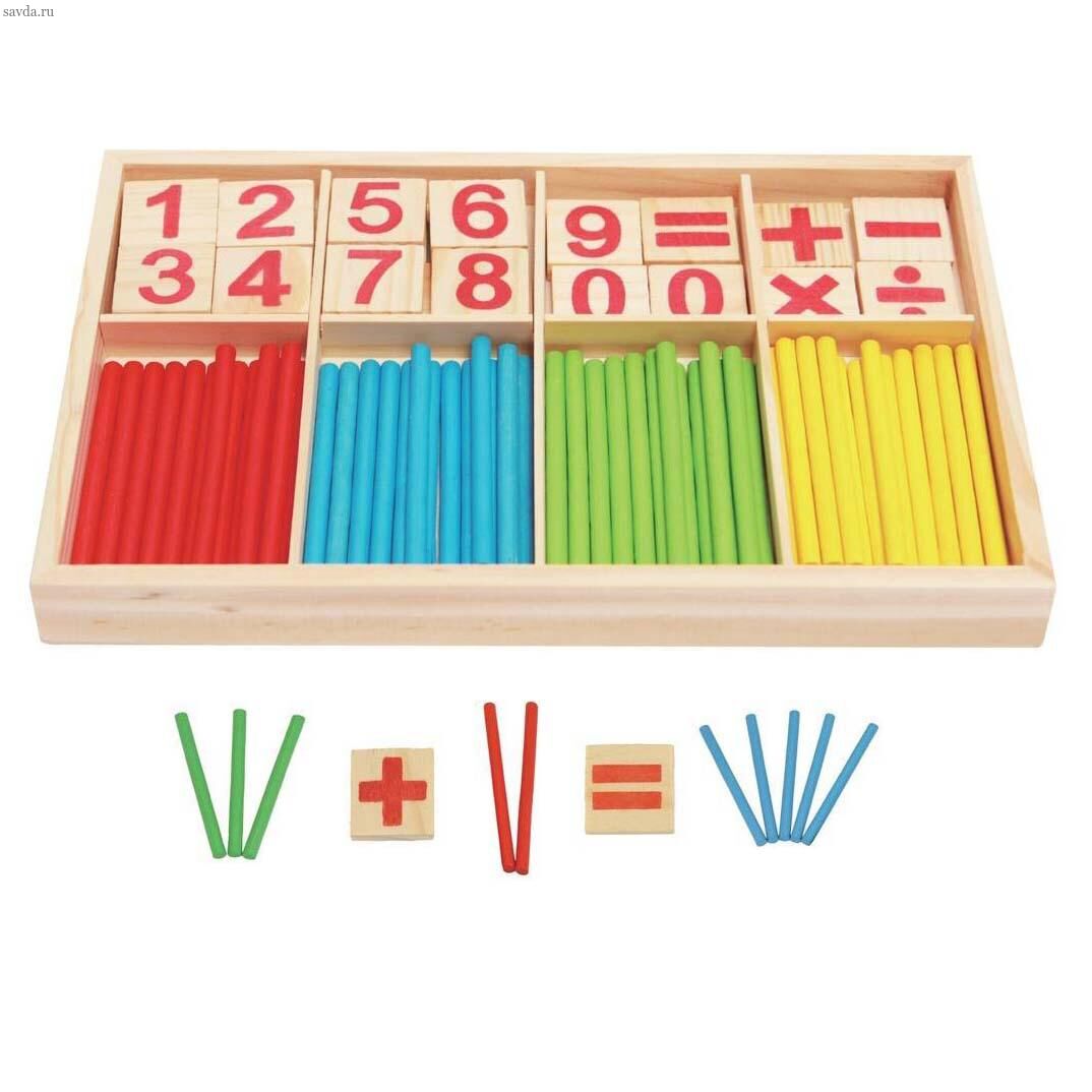 Предназначены для развития детского творчества и навыков счета. В деревянном ящичке с отсеками расположены 72 детали: 19 цифр от 0 до 9, 5 знаков (+, -, х, /, =), 12 палочек красного, 12 - голубого, 12 - зелёного и 12 - жёлтого цвета. При использовании счётного материала ребёнку будет проще понять, как решаются примеры на сложение, вычитание, умножение и деление. Набор будет полезен не только дошколятам, но и школьникам младших классов для закрепления полученных знаний.