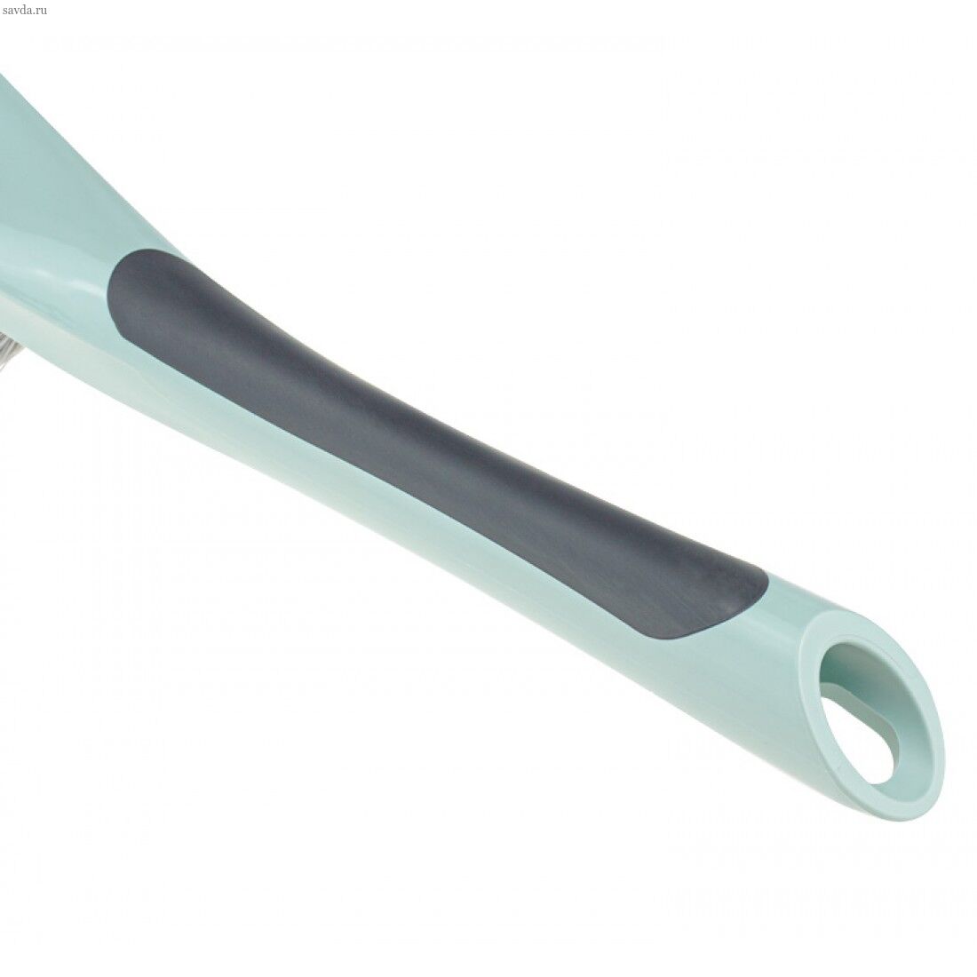 Имеет удобную прорезиненную рукоятку с отверстием для подвешивания и длинную плотно посаженную щетину средней жёсткости. Щетина расположена под углом для увеличения захватываемой площади.