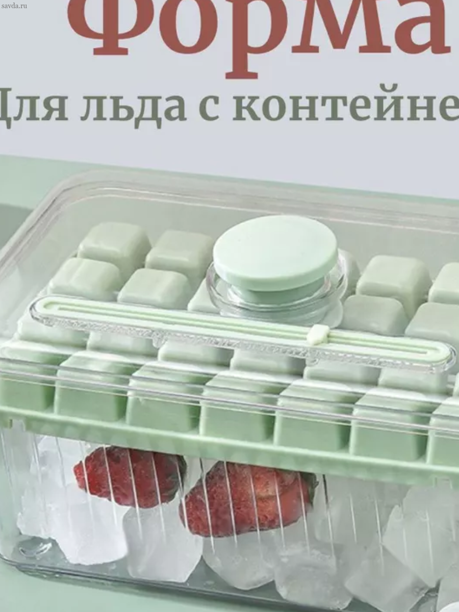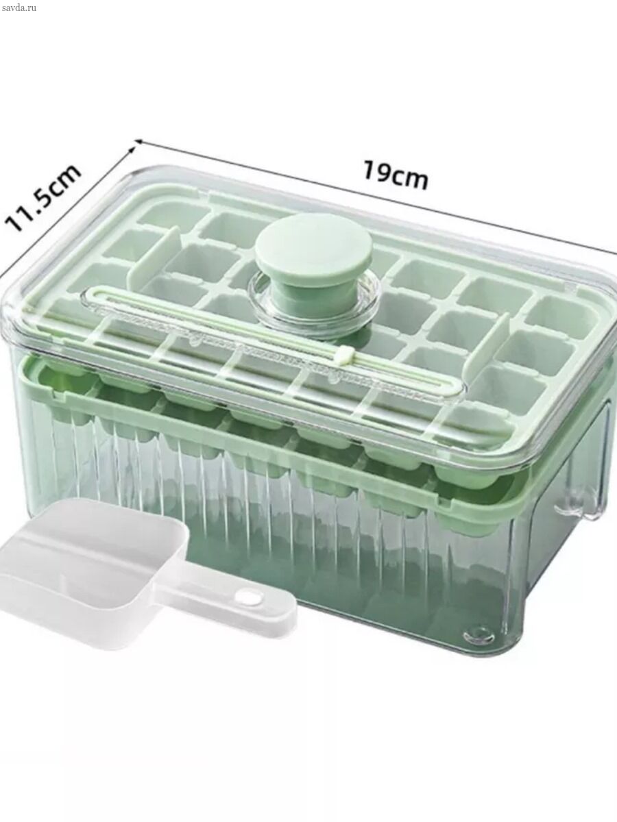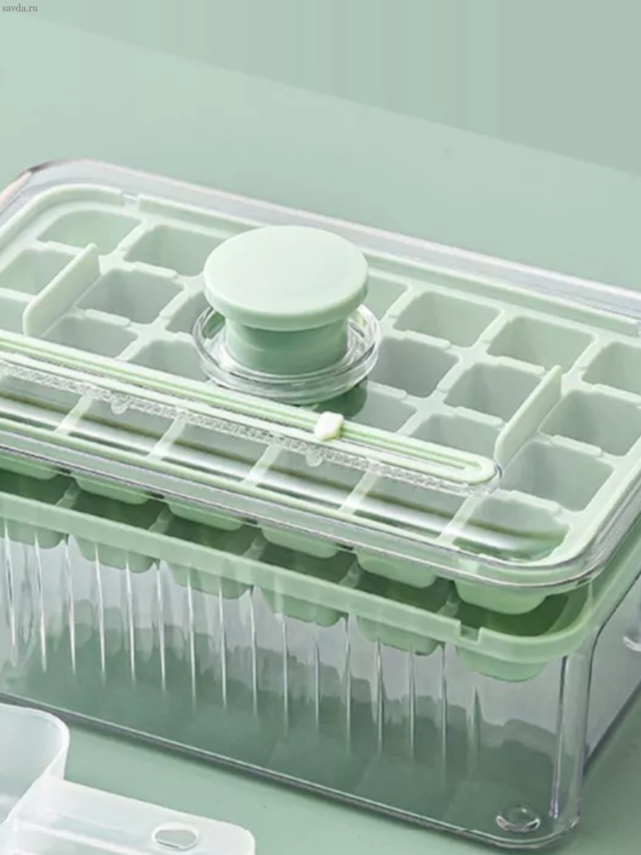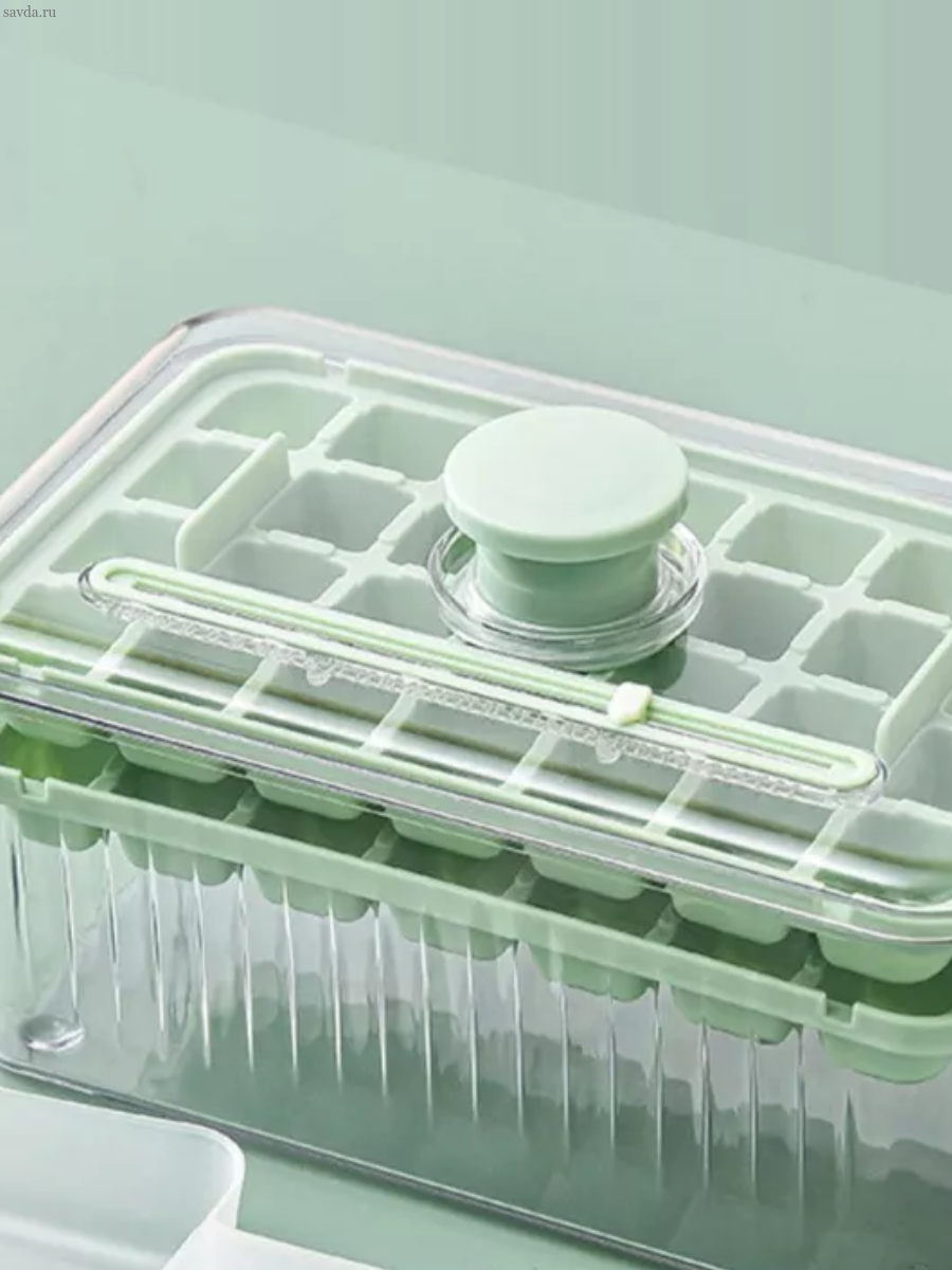 Контейнер для льда-отличное решение для замораживания льда и компактного хранения. Форма для льда поможет вам быстро заморозить большое количество льда, благодаря двум емкостям вы сразу получаете 56 кубиков льда. В комплекте вместительный контейнер, крышка с кнопкой, 2 формы и лопаточка. Контейнер выполнен из высококачественного материала благодаря чему он не трескается при минусовой температуре. Контейнер компактный он не займёт много места в вашей морозилке. Лёд можно приготовить из чистой воды, сока или в воду добавить кусочки фруктов ягод, красиво оформить ваши напитки и получите максимальное удовольствие от напитков. Защитная крышка защитит лёд от пыли и запахов. Эта форма для льда прослужит вам долго так как выполнена из качественного пластика. Так же форма для льда будет отличным решением для подарка бабушке, маме, сестре, подруге на любой праздник. Полезный и практичный аксессуар для дома или заведений. Его оценят все кто любит порядок в холодильнике.