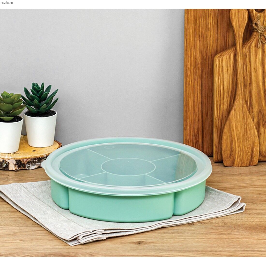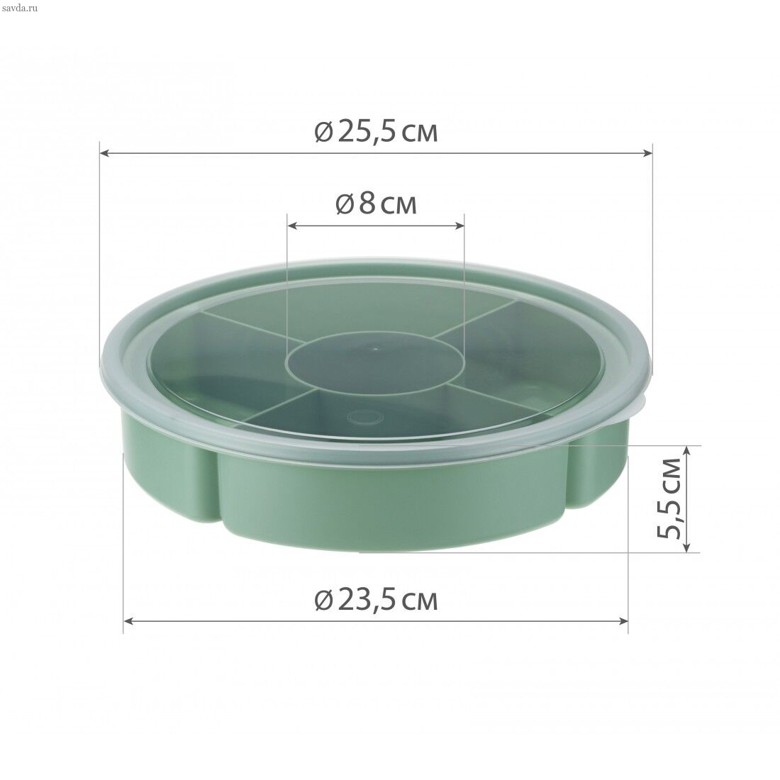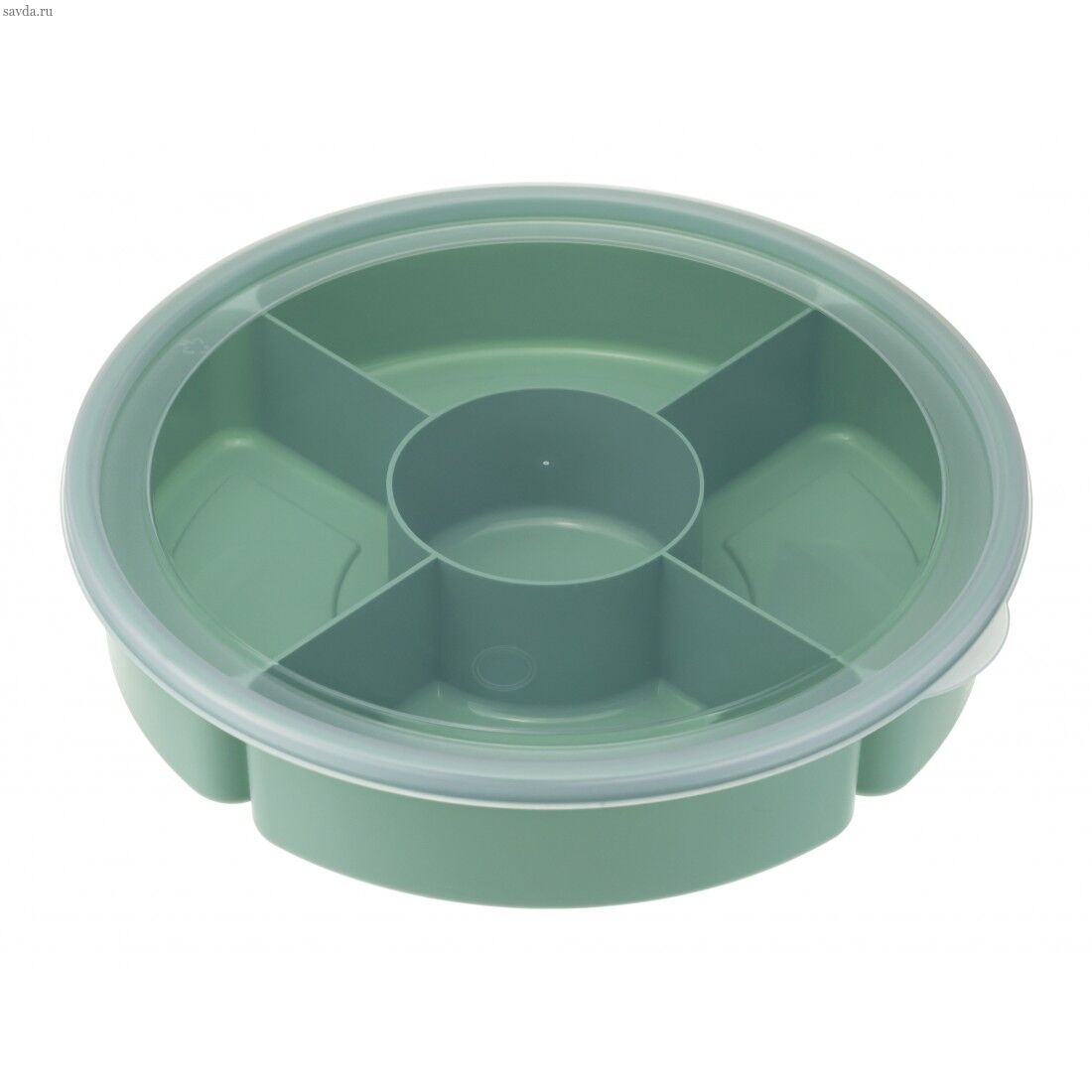 Менажница имеет крышку, которая надёжно сохранит содержимое ячеек в закрытом положении.