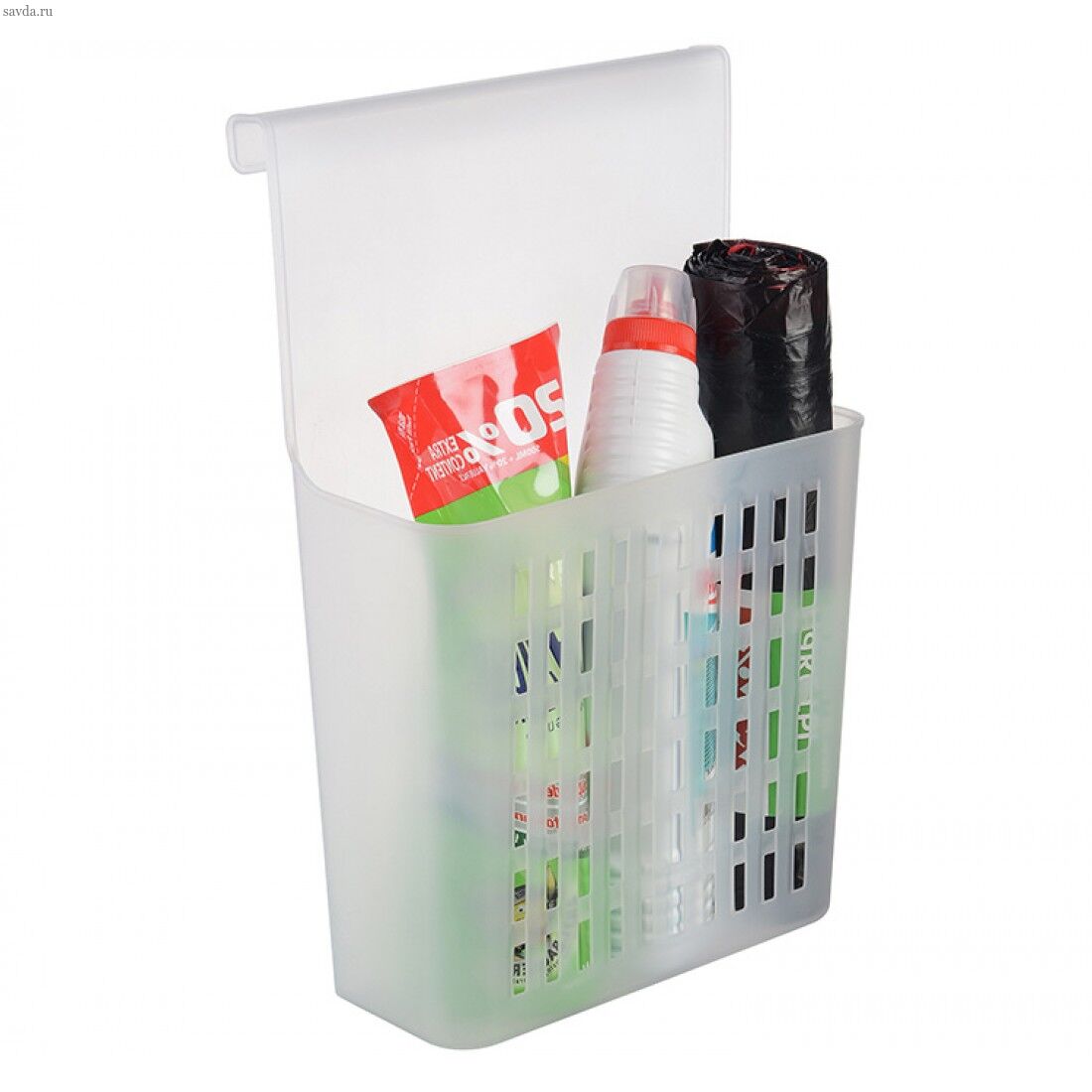 • Прочная и вместительная подвесная корзина помогает организовать хранение  бытовой химии и моющих средств, кухонных аксессуаров и других мелочей.
