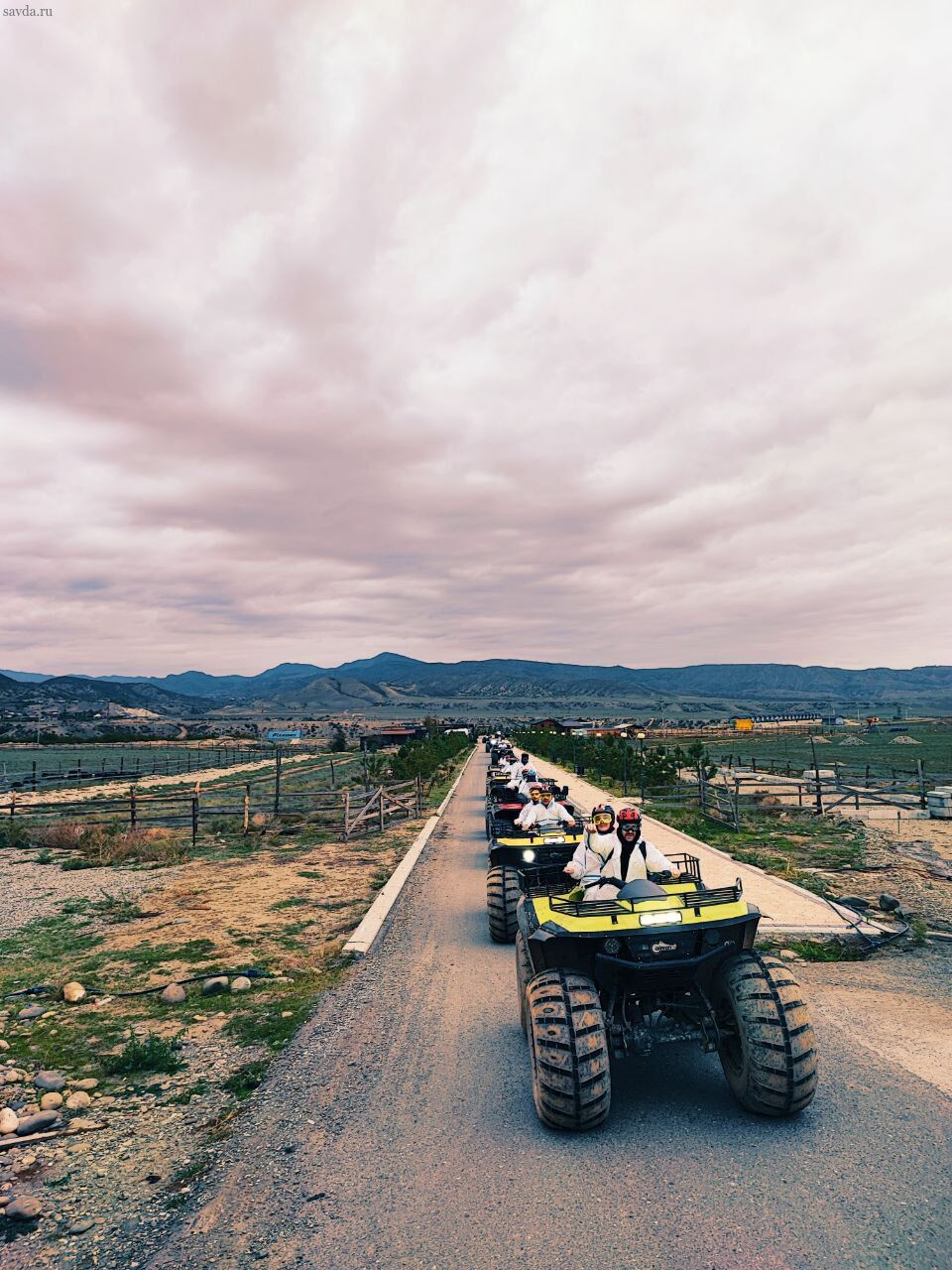 Выезжаем на квадрациклах по асфальтной дороге, пересекаем реку Сулак через мост и поднимаемся в гору, через лесной массив. В дороге Вы увидите красивые луга и остановитесь на смотровой площадке, откуда отроется умопомрачительный вид на Сулакский каньон. Возвращаемся на базу тем же маршрутом.