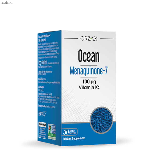 ORZAX Ocean Menaquinone-7 100 ед vitamin K2 Океанический витамин К2 содержит 100 мкг Менахинона-7. Мк-7 обеспечивает наиболее биодоступную форму витамина К для поддержки крепких костей и здоровой сердечно-сосудистой функции.*